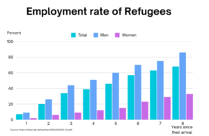 “The recent IAB study, around 64 percent of refugees who arrived in 2015 were employed by the end of 2024, compared to 70 percent in the general population. Roughly 90 percent of them held jobs subject to social insurance contributions, and most worked full-time. Herbert Brücker, head of research at IAB, noted that this fast pace of integration “is by no means self-evident given the initially unfavorable starting conditions.”